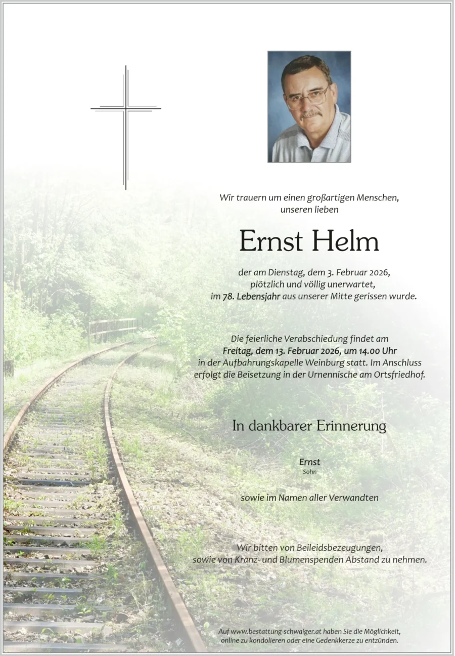 Lieber Ernst ruhe in Frieden! Unsere aufrichtige Anteilnahme!